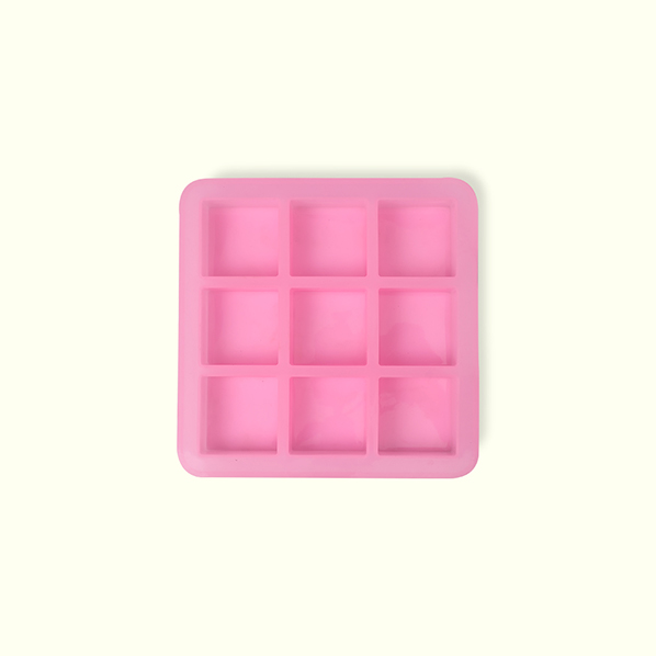SQUARE MOULD 9C 75GM FORMS NINE SQUARE-SHAPED SOAP BARS, EACH WEIGHING 75GM, IDEAL FOR CREATING VERSATILE AND CUSTOMIZABLE PRODUCTS.